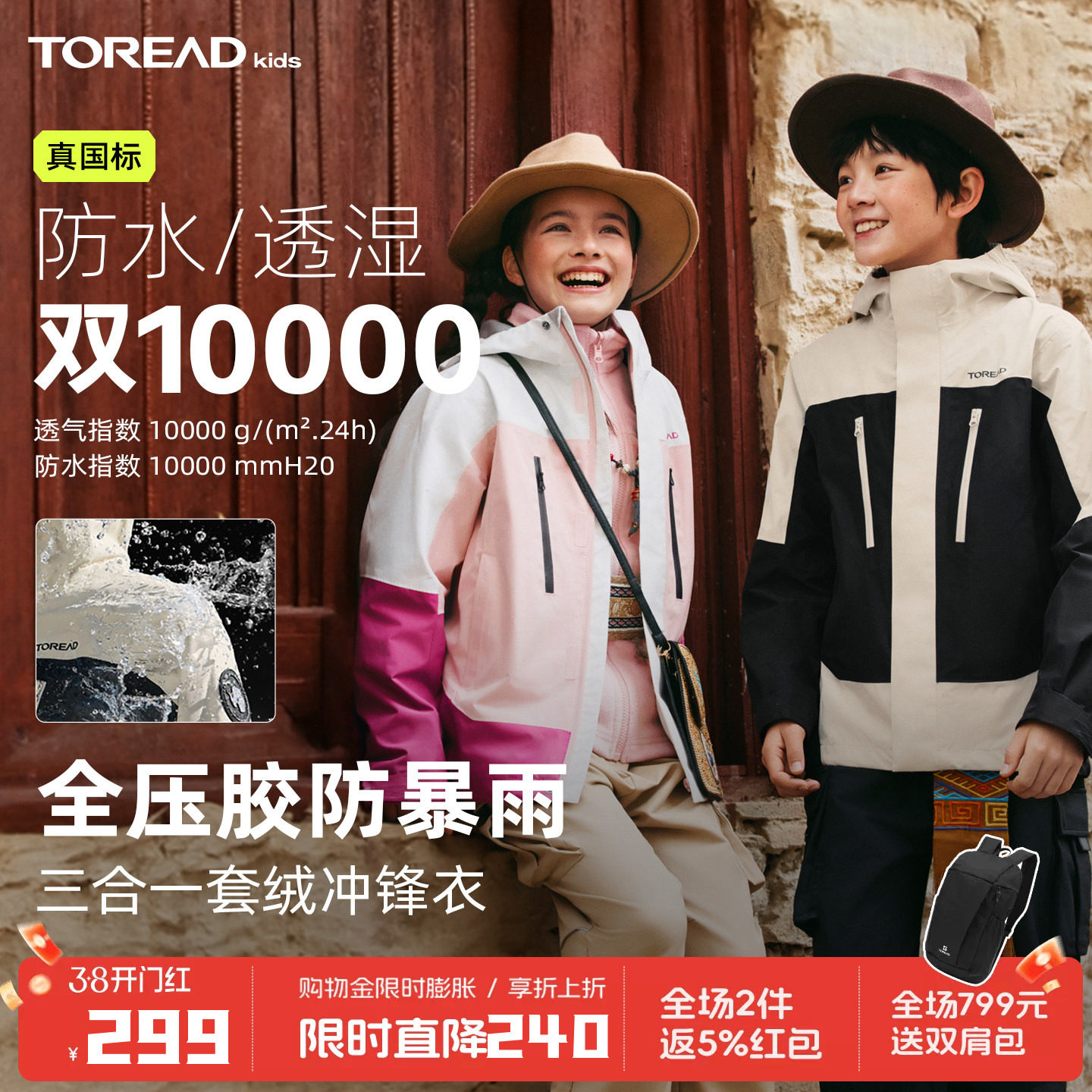 探路者儿童冲锋衣防风防水透气男童女童户外抓绒内...