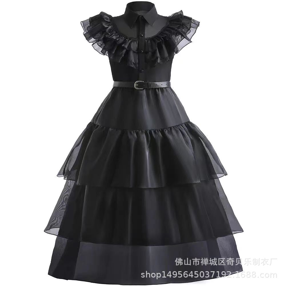 欧美暗黑萝莉礼服裙 cosplay亚当斯一家星期三黑色...