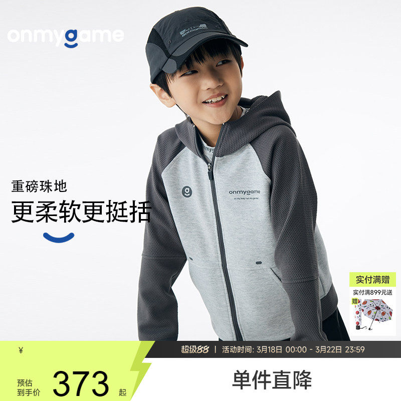 onmygame儿童运动外套秋季男女童户外连帽保暖上衣...