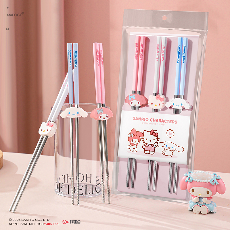 三丽鸥不锈钢筷子家用高档防滑防霉耐高温一人一筷...
