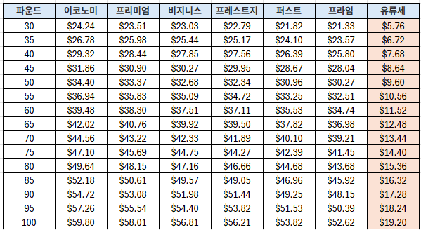 기존 배송비 변경 및 유류세가 따로 분리가 되었습니다.