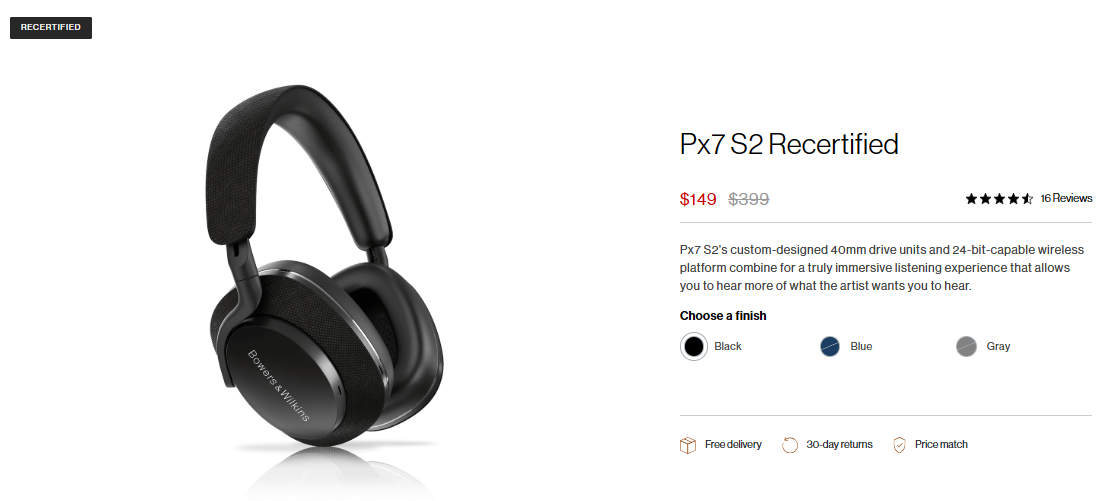 [Bowers & Wilkins]   Px7 S2 Recertified ($399 ▶️ $149)