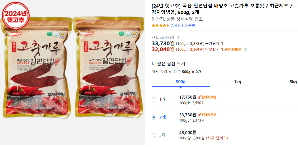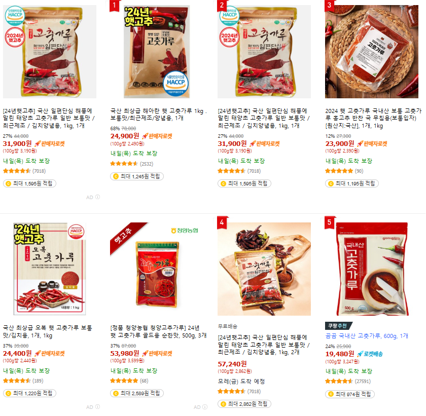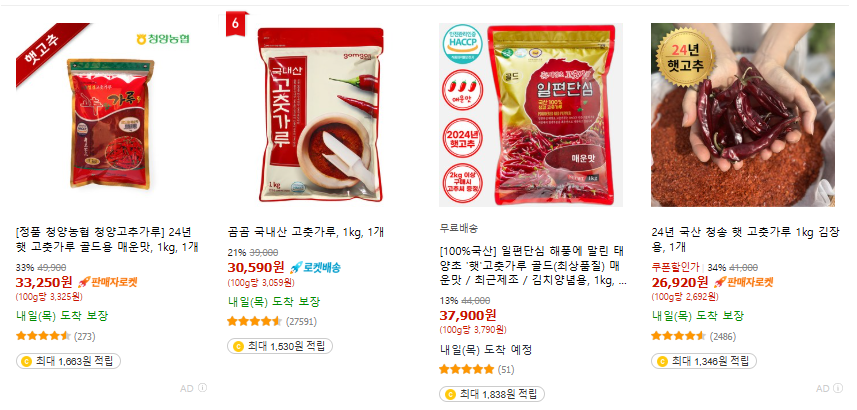 [쿠팡] 2024년 일편단심 해풍에 말린 한국산 태양초 고춧가루