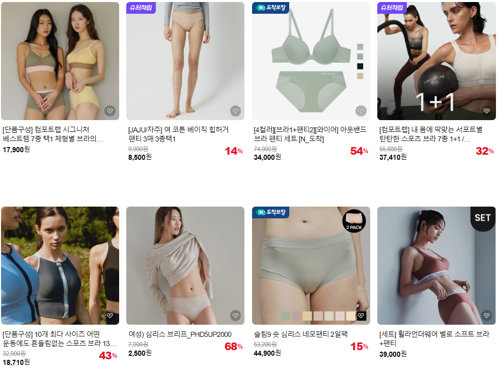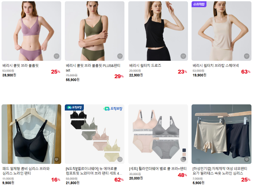 네이버 베스트 이너웨어, 언더웨어 브랜드 최대 60% 세일