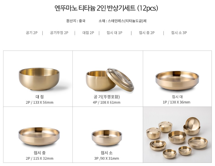 쿠팡  안성도자기 엔뚜마노 티타늄 2인 반상기세트 12p