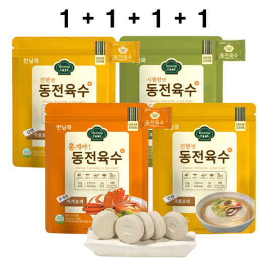 쿠팡  한닢쿡 코인육수 동전육수 3종 홍게육수 국물요리 전골요리, 40g, 4개