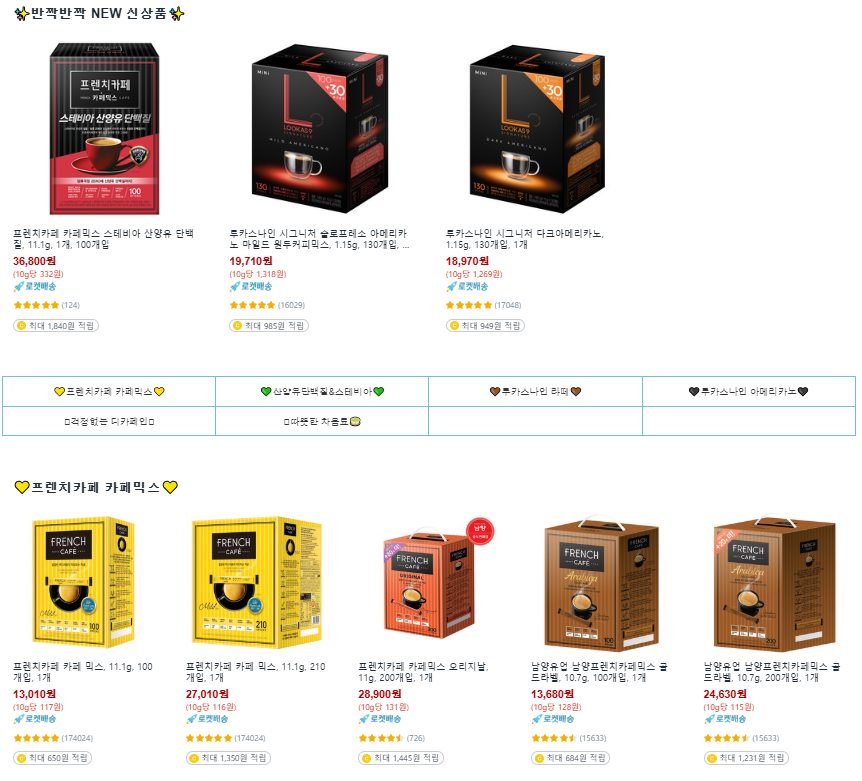 쿠팡   남양유업 대한민국 건강한 커피 프렌치카페 커피 믹스
