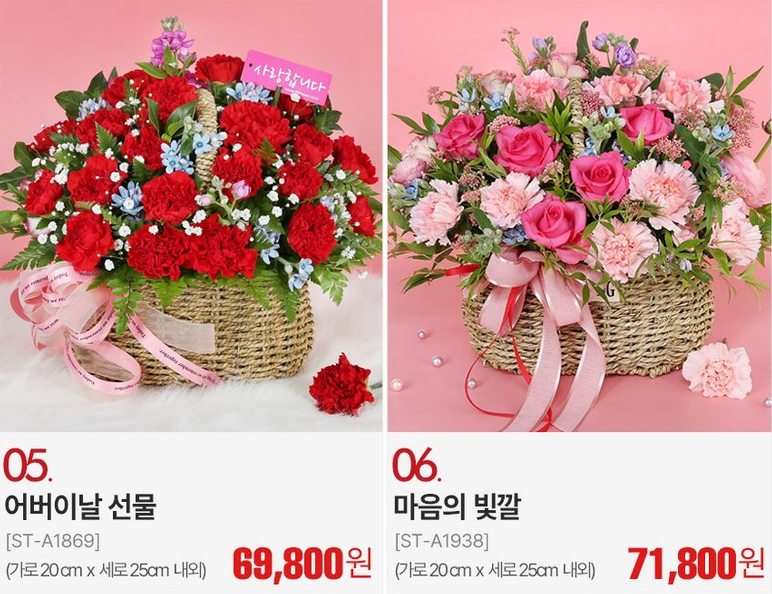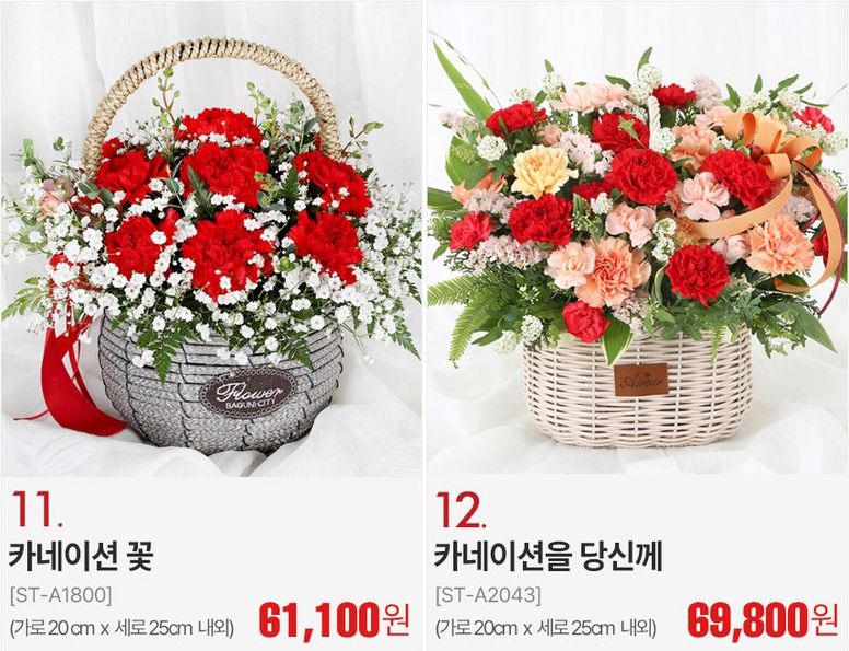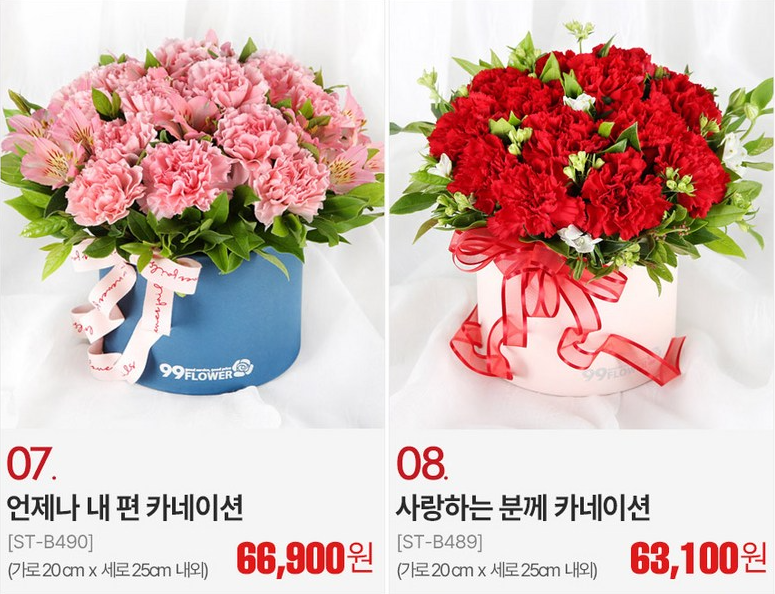 99플라워 / 전국당일도착 카네이션 꽃바구니 생화 화분 꽃다발 선물 어버이날 스승의날 꽃배달 서비스